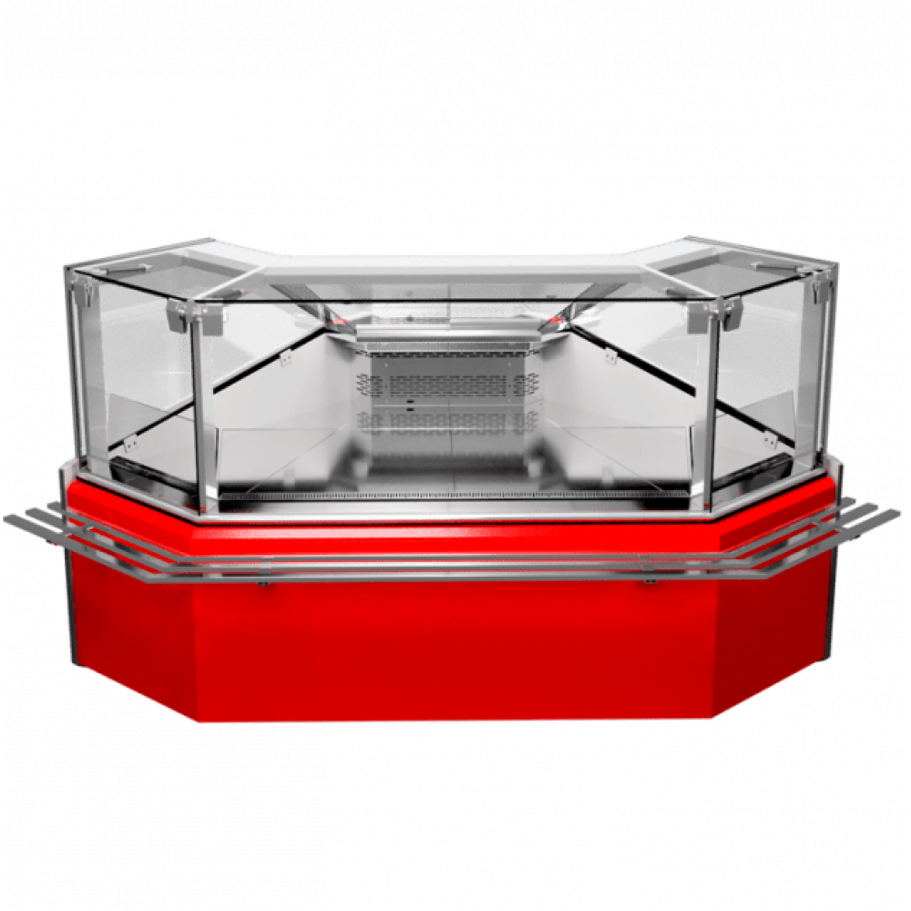 Фасад виконаний з гартованого скла, а викладка і полиця продавця - з нержавіючої сталі.